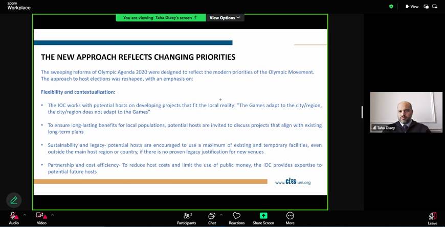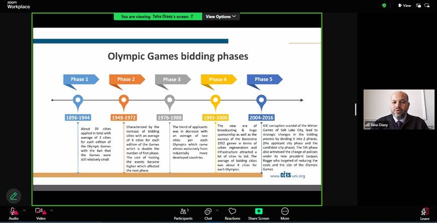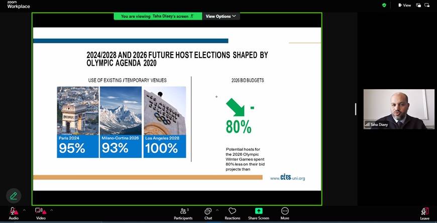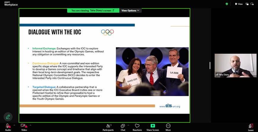 Mr. Taha started the session by sharing his journey in the sports industry and his current role in Sport Makers. The session began with a graphical image of sports dimensions in a mega event, its impact and went on to explain the definition of a bid. Bidding for hosting sports mega events has become a defining feature of global sport governance, reflecting the scale, frequency, and socio-economic impact of such events. Sports mega events like the Olympic Games are characterized by their international appeal, massive audience reach, and long-term legacy for host cities. The origins of the Olympic movement can be traced back to ancient Greece, but its modern revival began in 1896 under the vision of Pierre de Coubertin, who sought to promote peace and unity through sport. Over time, the process of bidding to host the Olympics has evolved from informal selections to highly competitive, structured procedures requiring detailed candidature files and strategic planning. The International Olympic Committee has introduced several reforms to make the bidding process more transparent, sustainable, and cost-effective with the aim to reduce financial burdens and encourage more cities to bid.