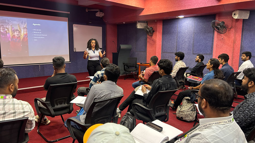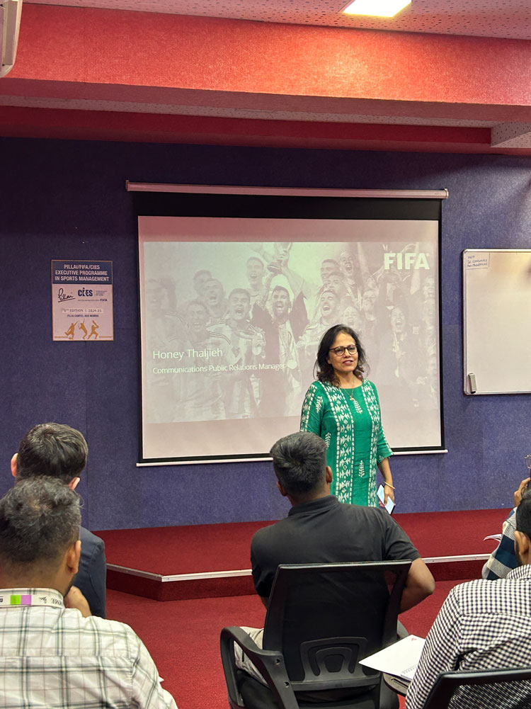 The participants of the 6th edition of the PILLAI/FIFA CIES International Programme in Sports Management had a CIES conference on “Communication Strategies at FIFA” by Honey Thaljieh, Public Relations Manager at FIFA and the Co-founder of Women’s Football in Palestine on 2nd March, 2025. Ms. Thaljieh is a FIFA Master and the Captain of the first-ever Women’s National Team in Palestine.