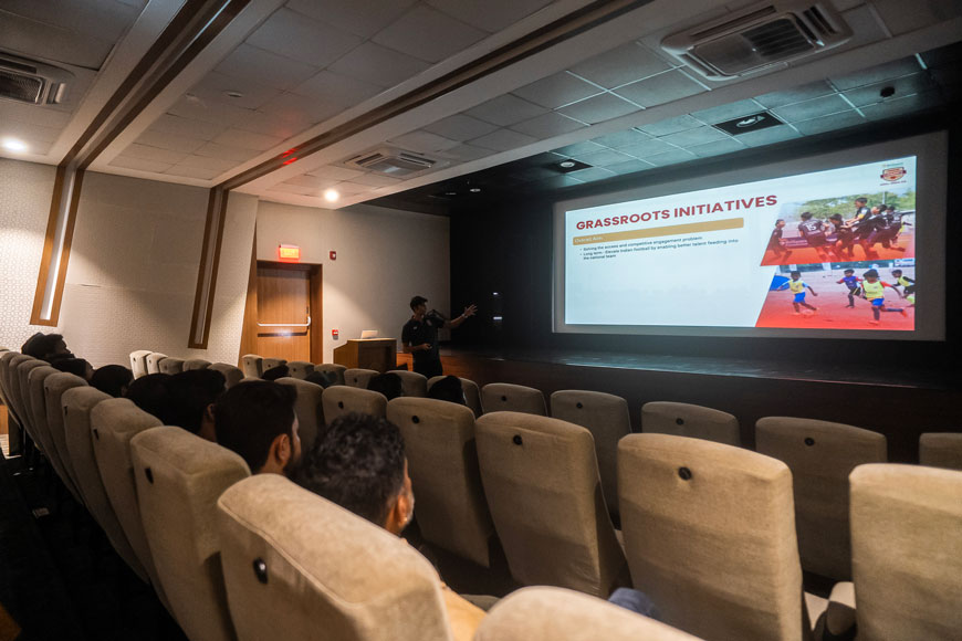 The current batch of the Pillai FIFA CIES International Sports Management Program were delighted to visit the premier residential football academy of Reliance Foundation Young Champs (RFYC) located in Navi Mumbai including the football turfs and its facilities in Reliance Corporate Park. We were warmly greeted by all the members of the RFYC academy, each one of them introducing themselves to us followed by a brief presentation about their academy and its operations. It was uplifting to see how the members of RFYC academy have been making a huge impact for Indian football at the grassroot level. Each member of the academy brought in different skills and experience for the holistic development of the young players, right from the nutritionist to marketing to the data analyst, everyone was committed to building pathways and careers for the kids, including gearing for a life after sports. The members of the academy stressed that nurturing good life skills was a paramount objective when the kids come and stay with them, building trust with both the young players and their parents one step at a time.